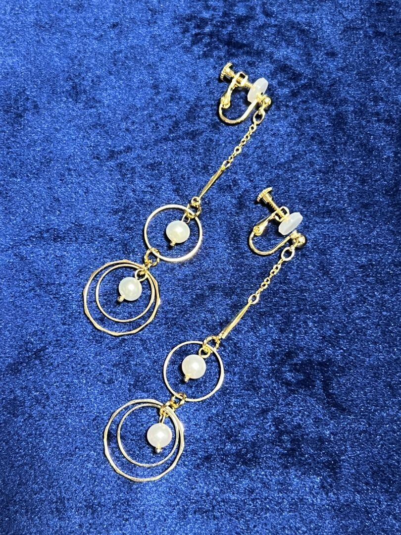 淡水パールを使用した長めのイヤリングです