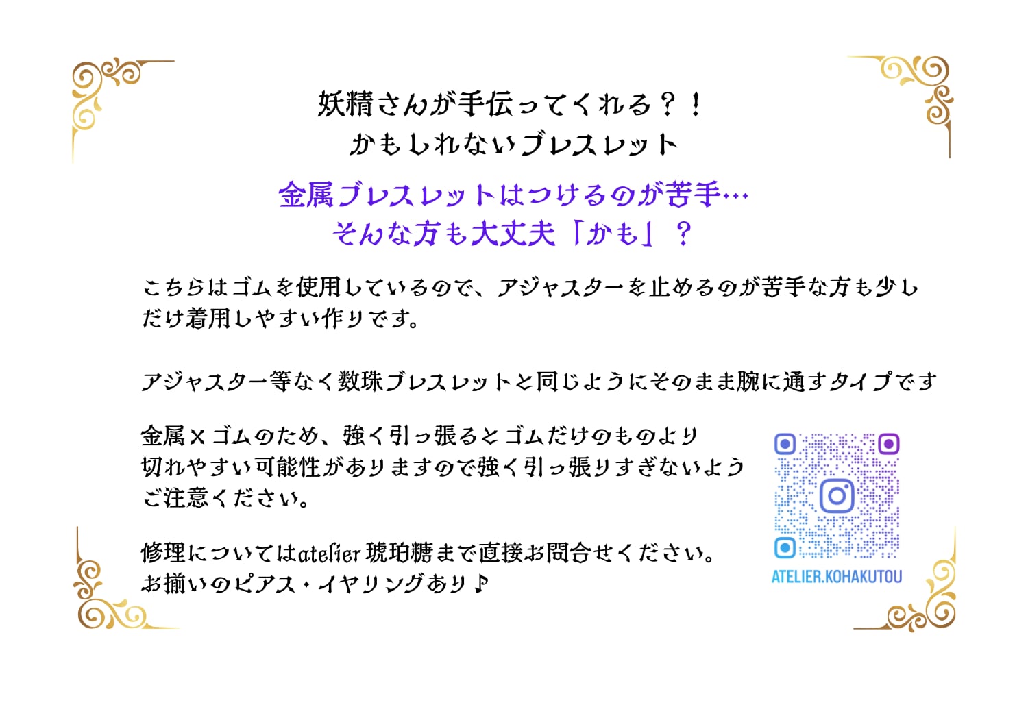 アジャスター等なく数珠ブレスレットと同じようにそのまま腕に通すタイプです