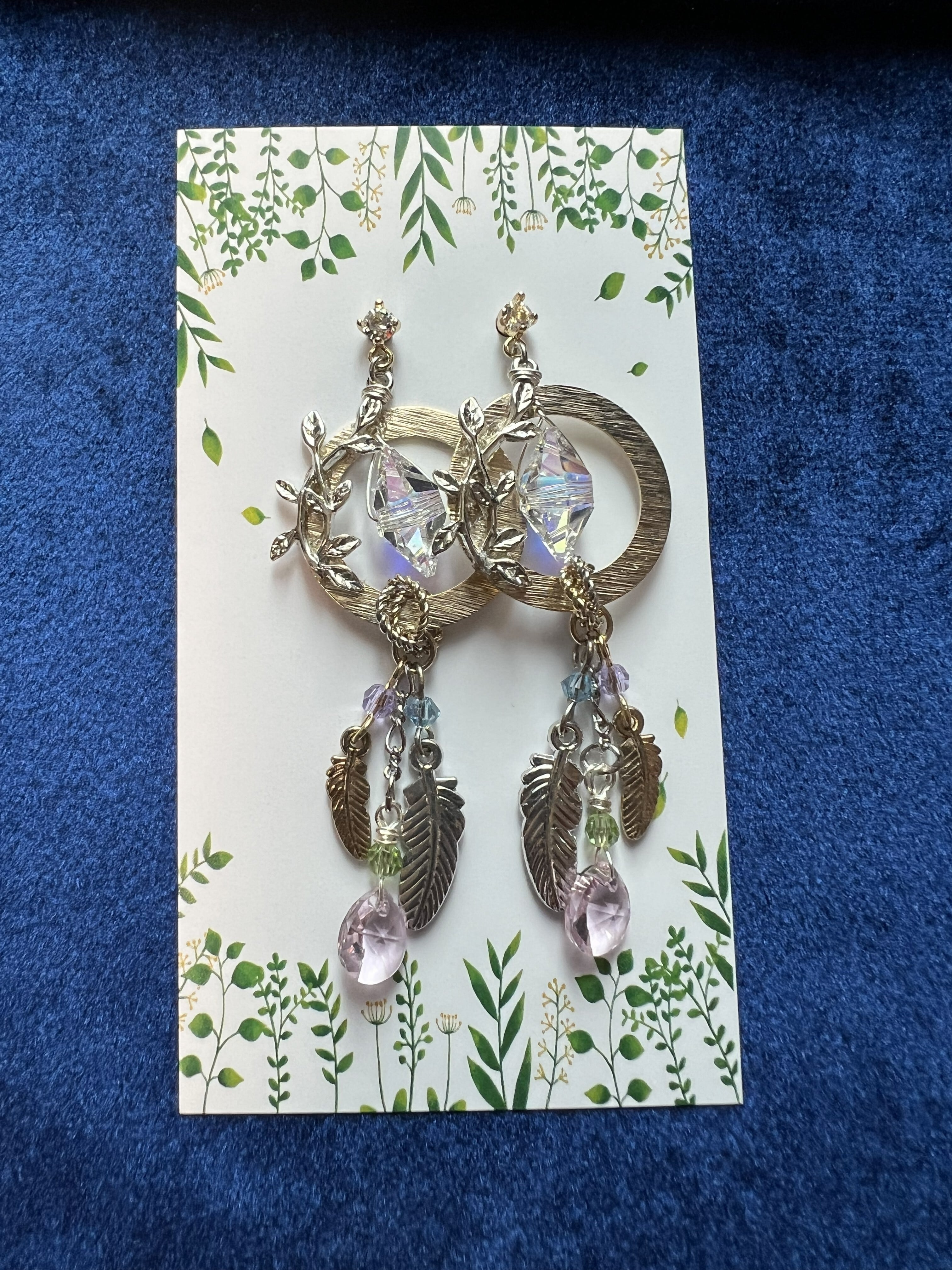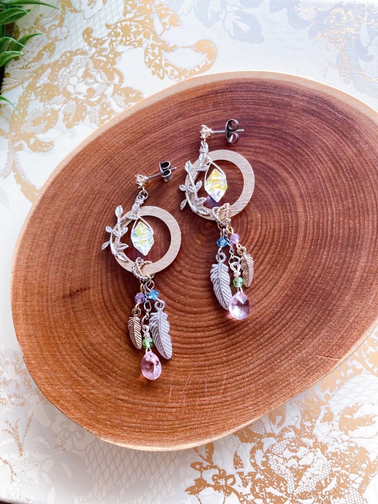 私が最近感じる印象で一番強いピンクの大きめのビーズ、中心に天使を感じるクリスタルオーロラ系のビーズの2つをメインにしました。