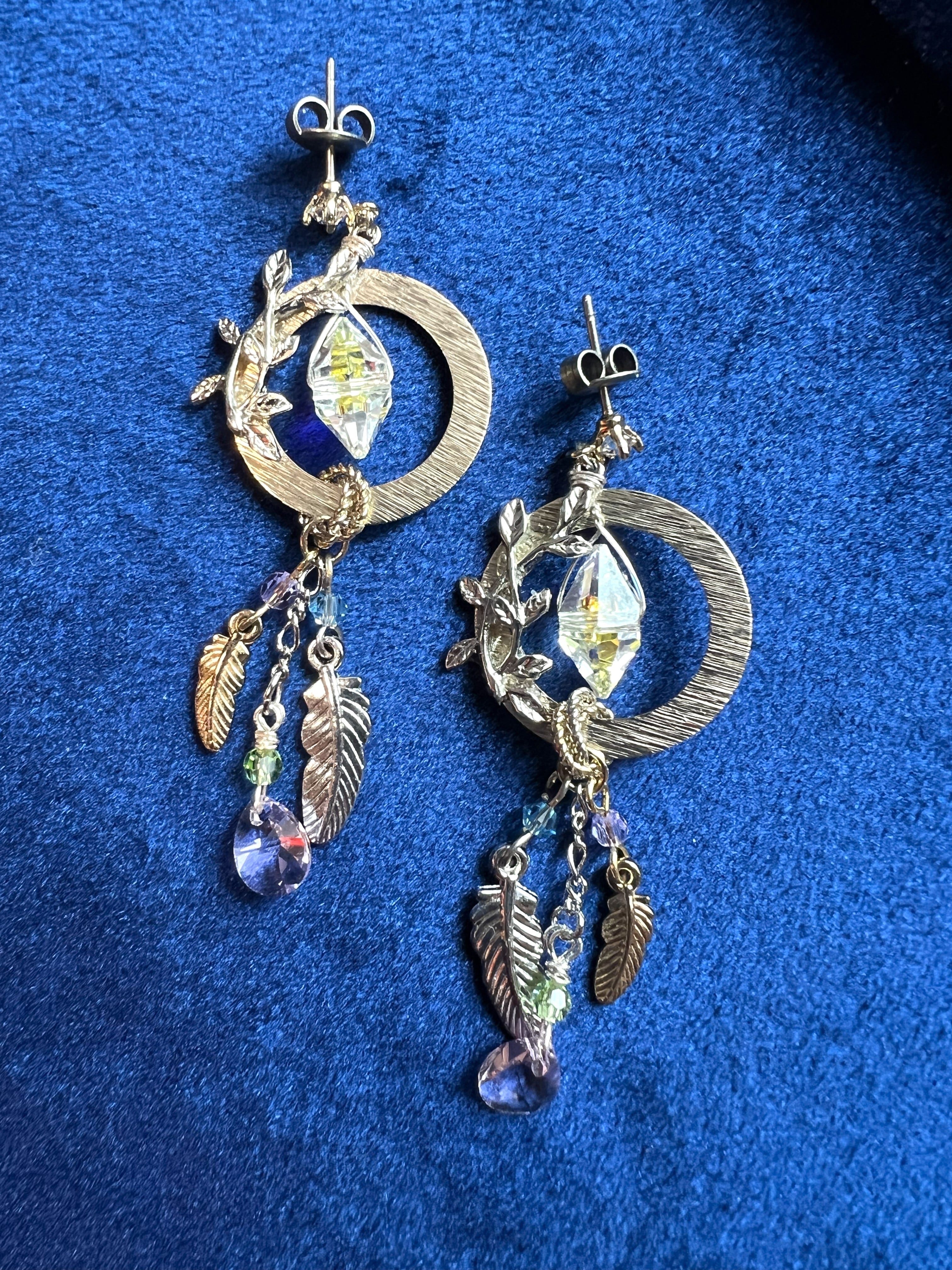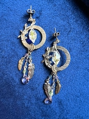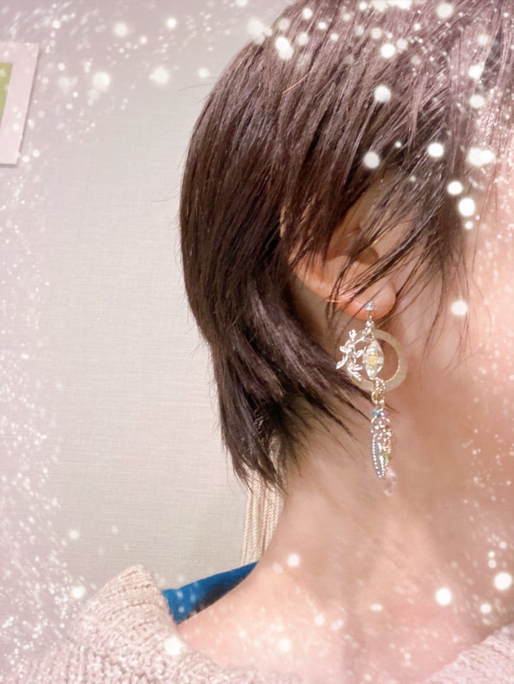 このパーツを組み込んで、私から見たご依頼者さまのイメージでピアスを作ってほしいとのことで、金銀の羽根のパーツをお預かりしました。