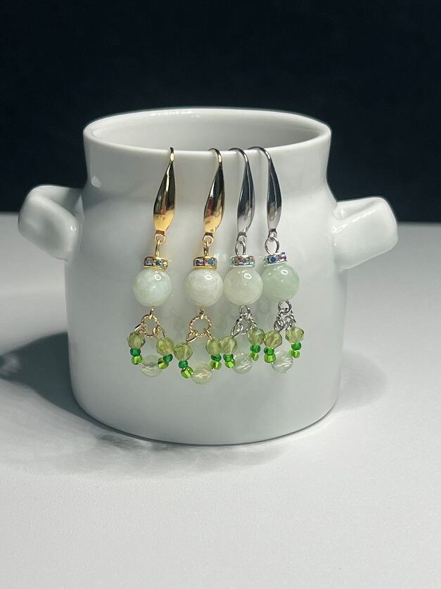 自分のピアスを作る作業をはじめてから、かわいいと言ってもらえることがとても多かったピアスを石を変えて作りました。