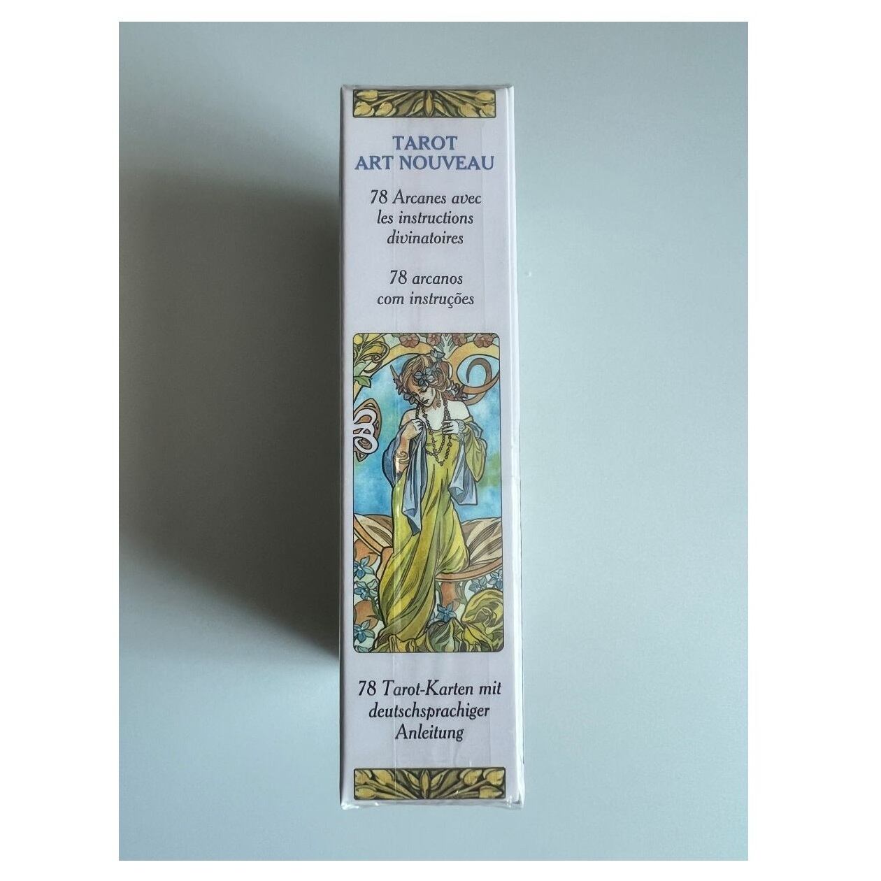 19世紀末から20世紀初頭にかけて、ヨーロッパやアメリカを中心に開花したアール・ヌーヴォー(新しい芸術)様式の優美で淡いタッチの絵と、神秘的な古代占術のシンボルを、この華麗なタロットが生まれました。