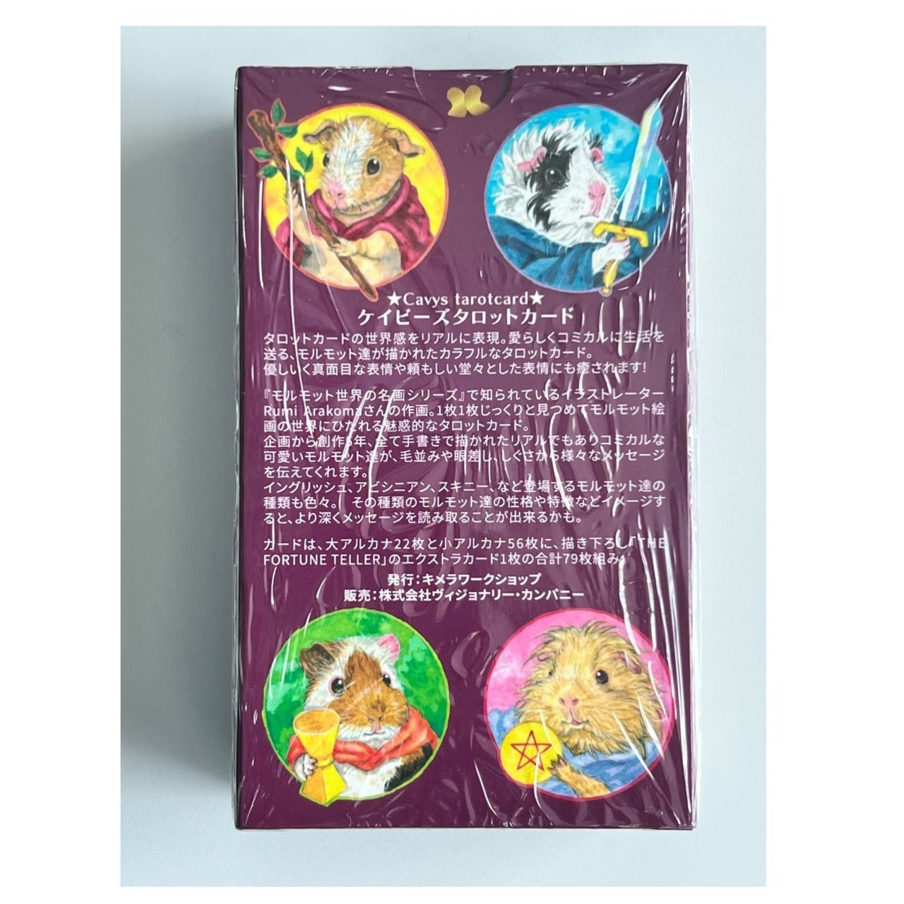 コロコロモフモフと愛らしくコミカルな仕草あふれるモルモット達が描かれた、画集のようなカラフルなタロットカードです。
