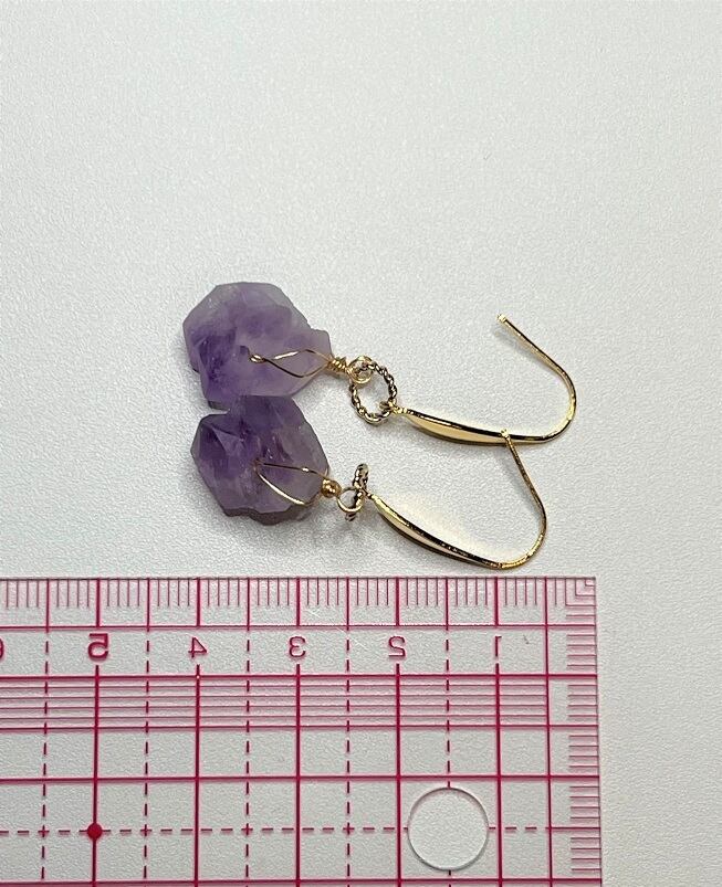 ローズアメシストの穴ありラフロックタンブルのシンプルなピアスです。