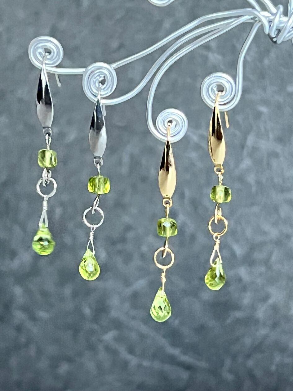 ブリオレットカットの宝石質ペリドット&かわいらしいキューブカットペリドットの組み合わせ。