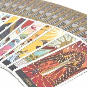 パステル調のカラーやグラデーション、ゴールドなど鮮やかで明るいイラストが特徴的。カラフルで軽やかさを感じさせるスタイリッシュなタロットカードです。