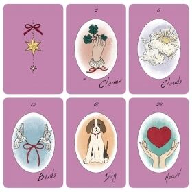 使う人に様々な幸せな縁が結ばれていくようにと願いを込めて、赤いリボンが所々に描かれたかわいいルノルマンカードができました。